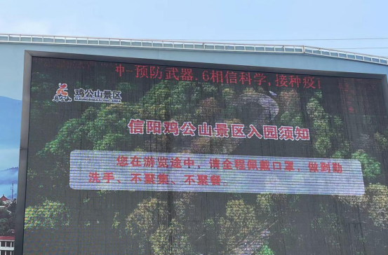 持续利用景区语音广播系统,定时播放疫情防控顺口溜、疫情宣传内容,每20分钟会循环播放一次,LED屏循环播放防疫知识及社会疫苗宣导内容。引导广大群众落实疫情防控措施,做好自我防护。