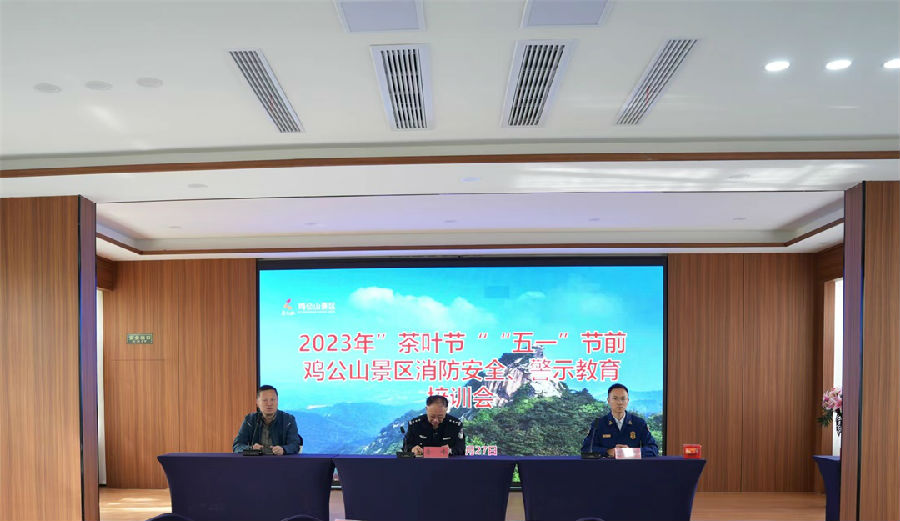 “五一”黄金周来临之际,为全面加强鸡公山风景区消防、安全生产工作,夯实安全生产基础,强化安全责任,切实提高员工的消防安全意识,4月27日上午,鸡公山景区在云中宾馆会议室组织开展了2023年“茶叶节”“五一”节前鸡公山景区消防安全、警示教育培训会。
